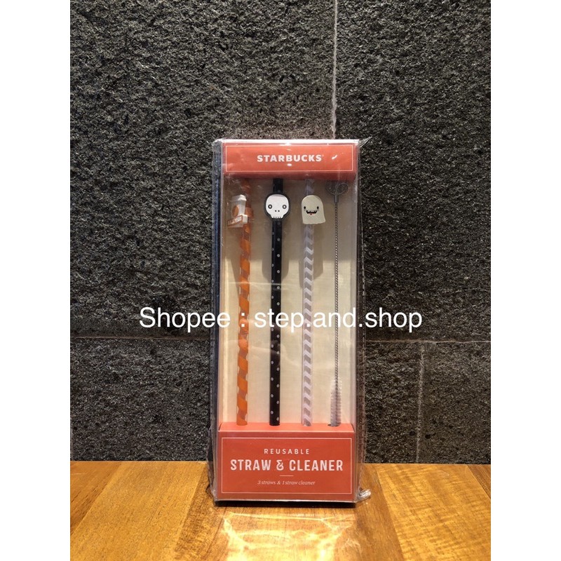 Jual Starbucks Korea Reusable Straw Set With Brush Cleaner Halloween